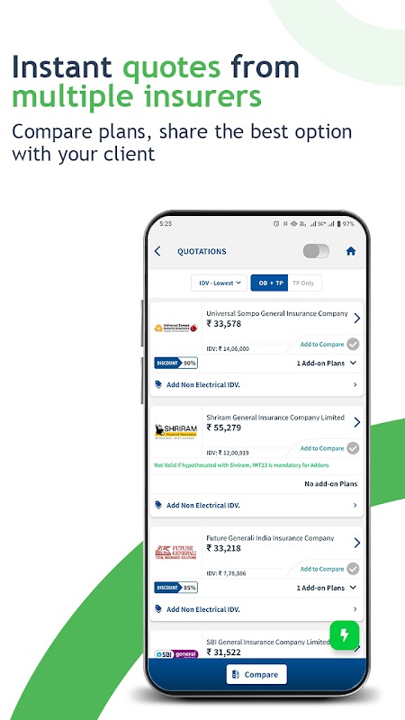 ビジネスパートナーは、保険会社が提供する複数のオプションを簡単に比較し、顧客に適切なポリシーを提案することができます。インスタントポリシー、インスタントオンライン支払い、即時手数料、ワンストップクレーム処理、顧客サービスおよび顧客保持などのビジネスパートナーニーズ効果的にこのモバイルapp.TheアプリはQuickinsureビジネスパートナーのすべてのビジネスニーズのマスターキーです。