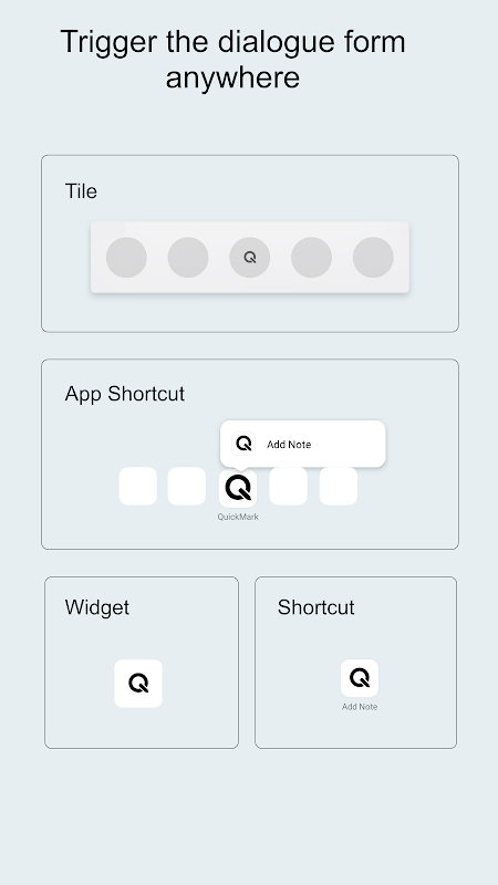 シンプルでクリーンなデザインの QuickMark を使用すると、クイック タイル ショートカット、アプリのショートカット、またはウィジェットを使用してどこからでもメモを取ることができます。何か気になることがありますか?ワンクリックでメモに記録できます。