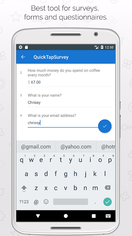 美しいアンケートやフォームを数分で作成できます! QuickTapSurveyは、オフラインでもどこでもデータをキャプチャできる唯一のアンケートアプリです。顧客からのフィードバック、調査、リードキャプチャ、監査、インタラクティブキオスクのための完璧なソリューションです。