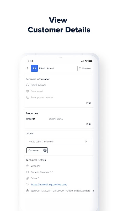 すべての顧客と訪問者の会話をWebサイトウィジェットからチームメンバーのモバイルデバイスのQuickworkConversationsアプリに移動して、人間のエージェントとして顧客のメッセージに即座に返信できるようにします。