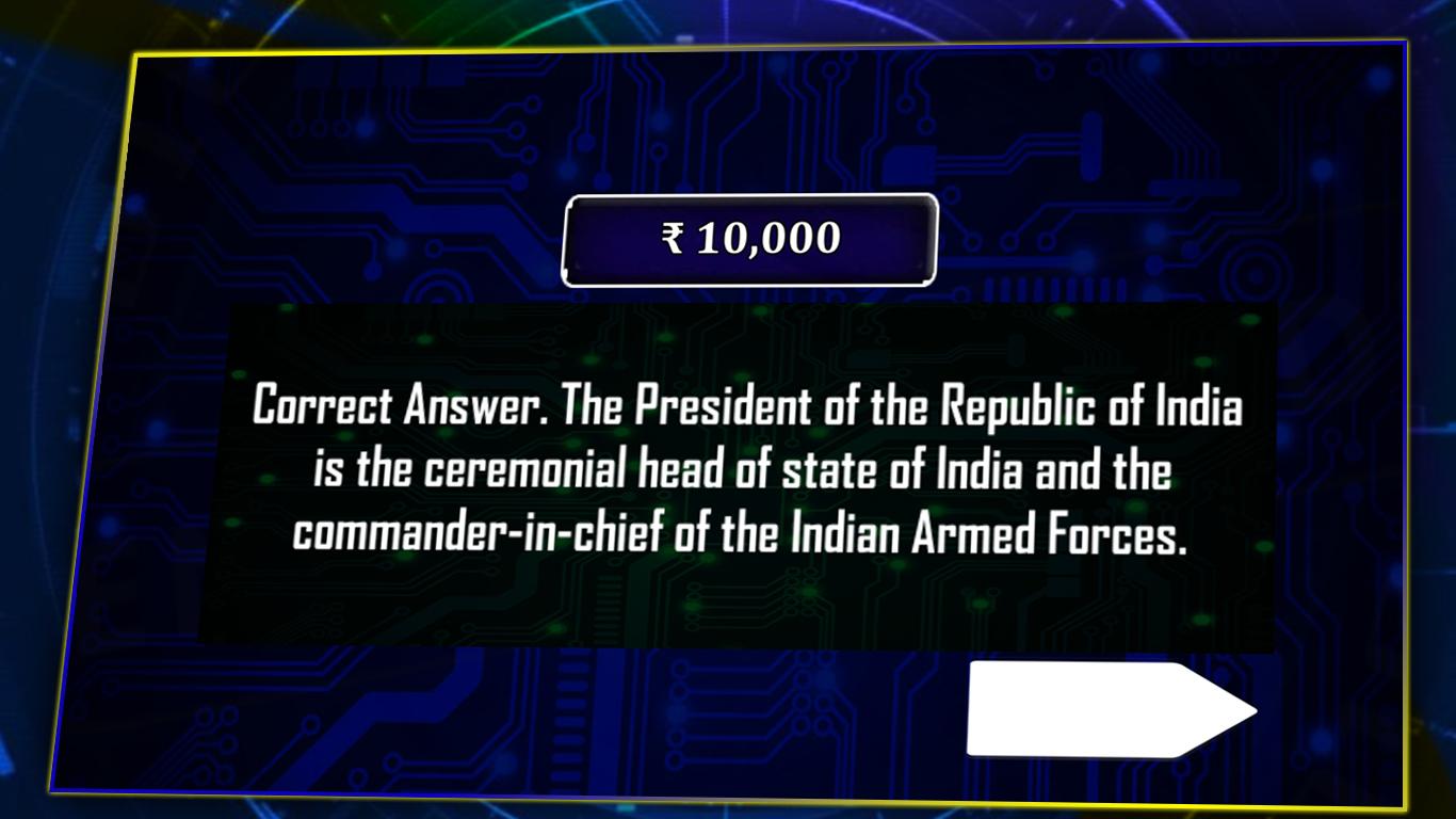 > KBC Crore - pati Game will take many topics like History of India and mythology etc. GK (General knowledge), Indian History Quiz, Cricket Quiz, All type of quiz, Bollywood quiz, film quiz, History quiz, International quiz and questions from almost all the topics like Social Science, Science, spiritual questions and difficult questions too.