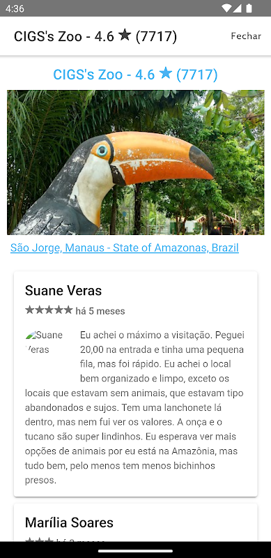 目的の観光スポットをクリックすると、左側にその場所の住所がリンク形式で表示されます。クリックすると、住所が記載された新しいウィンドウで Google マップのページが開き、その場所の距離を確認できます。 . あなたがいる場所から、場所が開いているかどうかを確認し、営業時間と曜日を確認し、アプリの外にある写真やその他の情報を確認します。