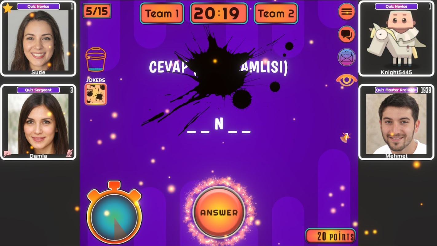 ゲームのテンポの速い性質は、あなたとあなたのチームメイトをスリリングな競争に没頭させるでしょう。正解するたびにポイントが増え、リーダーボードを登るのに有利になります。コンテスト終了時に最高得点を獲得したチームが、真のクイズマスターであることを証明します!
