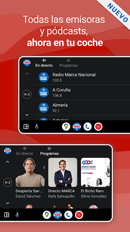 ラジオマルカ、ラジオ局の編集ユニットは、2001年からスポーツ中継と最新のデジタル技術の24時間以内に最初のスポーツをテーマにしたスペインです。 RADIO MARCAは毎週特定のプログラムですべての最新のサッカーだけでなく、他の多くのスポーツをカバーしています。私たちのプロジェクトは、若さと経験を兼ね備え、スポーツの星で脚光を共有するファンの参加を奨励し、ダイナミックかつ献身的なチームを持っています。 RADIO MARCAは徐々に完全にそれがなったこと、プロジェクトの成功を開発するための完全なカバレッジに到達するために自分自身や仲間といるつもりの間に50局以上で、スペインのスポーツ地理全体に広がっています。
