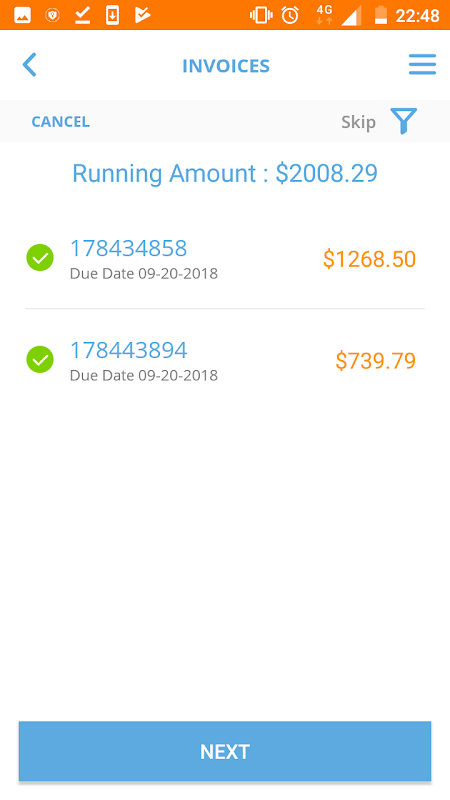 RadiusOneモバイルアプリでは、クレジットカードや小切手などのさまざまな支払い方法を使用して入金によるオープンA / R取引を決済することができます。