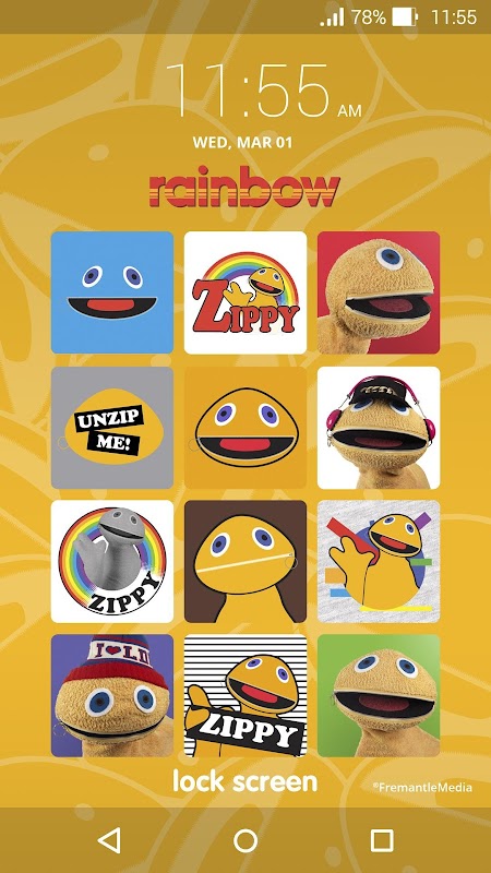 Introducing the Rainbow Lock Screen App, based on images from the Rainbow TV Series. ***This App is applicable for devices running Android OS 6.0 to 8.0.***