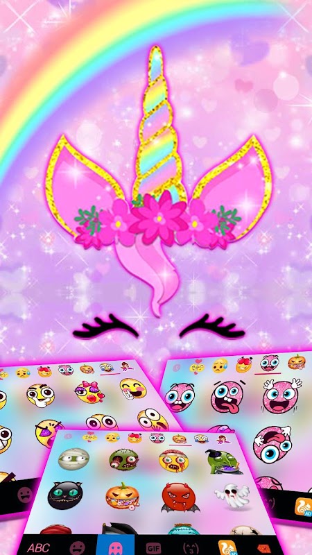💕新しいフォントと絵文字が付いた Rainbow Pink Unicorn のキーボード・テーマを見逃してはいけません。それはあなたの携帯電話をお洒落で以前より更にファッショナブルにすることができます!今すぐこの Rainbow Pink Unicorn のテーマをダウンロードして適用してください!