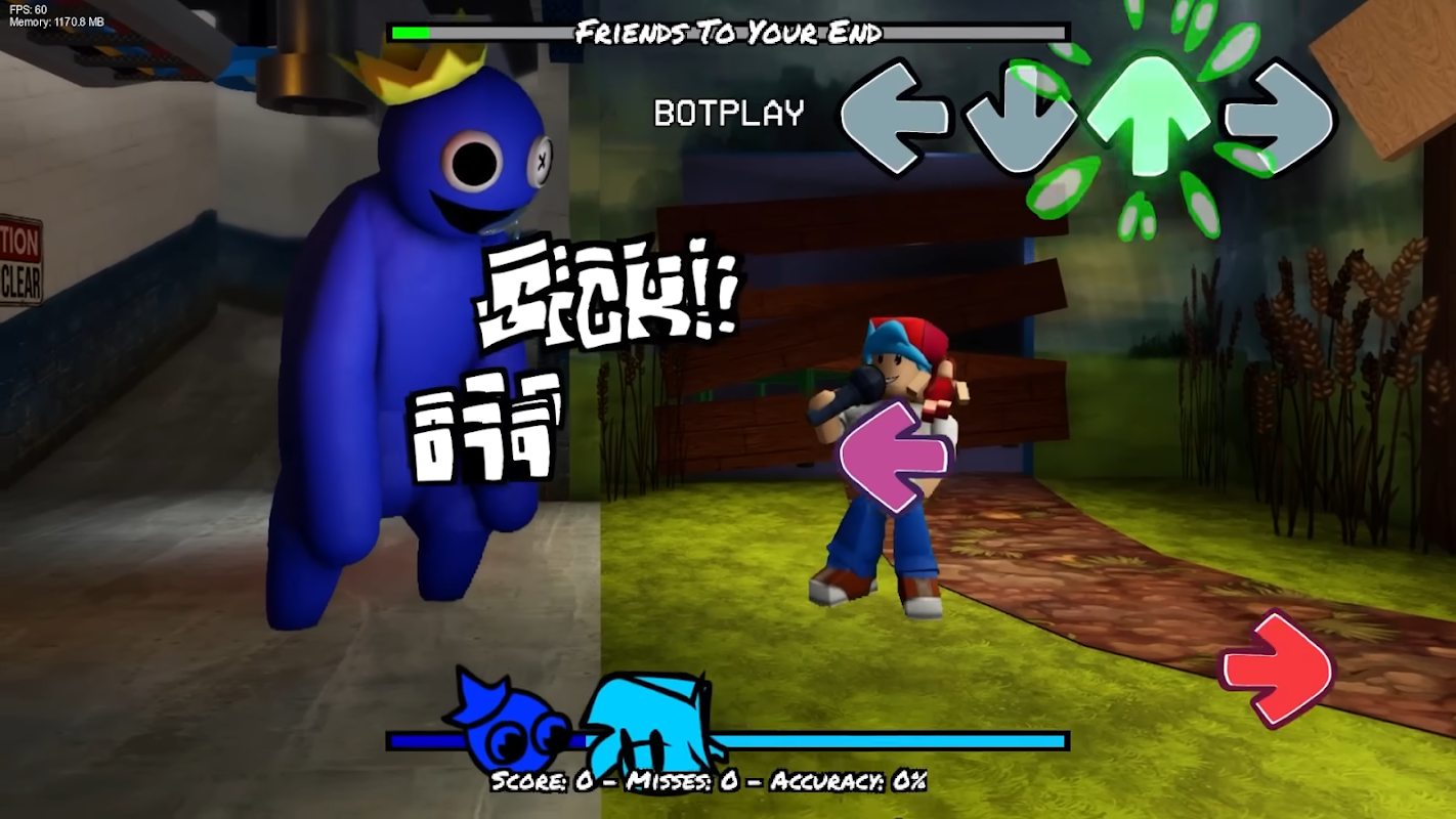 Rainbow Friends Mod では、ボーイフレンドが青や緑などと対戦します。 「Friends to the End」というシングル曲を歌います。