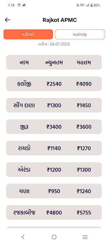 ライブ市場レート:Rajkot APMC で取引されるすべての主要農作物の最新価格を即座に入手できます。もう古い情報に頼る必要はありません!