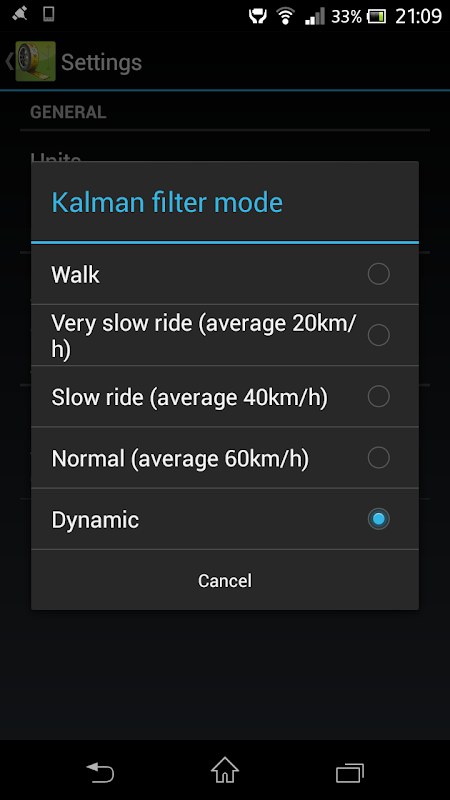 •Kalman filter settings - Kalman filter is an algorithm used to smooth out the track. This improves distance measurement since GPS accuracy is often far from ideal.