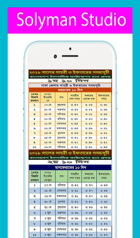 রমজান ক্যালেন্ডার ২০১৮ এটি মূলত মাহে রমজান ২০১৮ সময়সূচী। এই অ্যাপটির মাধ্যমে আপনি জানতে পারবেন ramadan calendar 2018 bangla রমজান ক্যালেন্ডার ২০১৮ ইফতার ও সেহেরীর সময়সূচী এবং গুরুত্বপূর্ণ সকল আমল।
