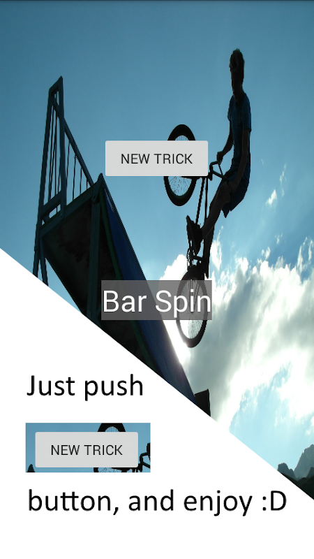 With BMXDice you can challenge your friends, or exercise alone to learn new tricks. There are three levels to choose according to your abilities. The Noob level only has the basic tricks.Amateur level has more advanced tricks.Insane level has all the tricks.