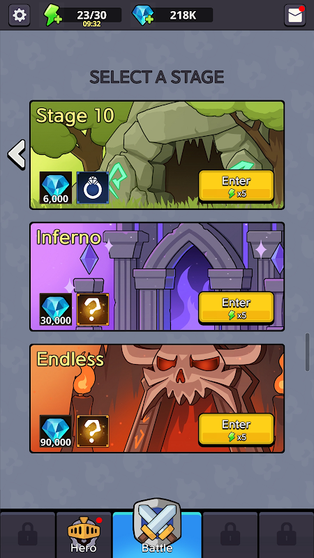 📈 ヒーローがレベルアップするたびに、さまざまなバフカードから選択