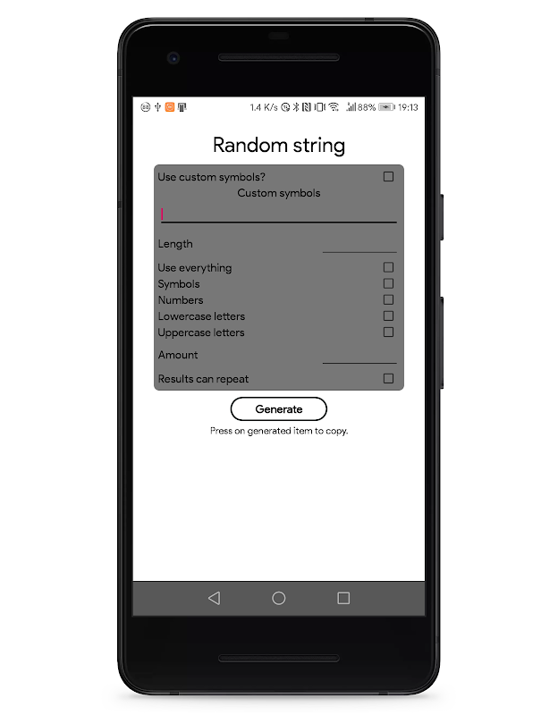 - get a random string that is made from numbers, symbols, lower case, and upper case letters.