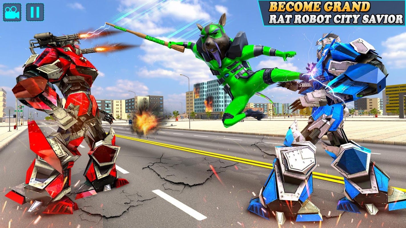 Transforming robot war started in the futuristic city after the enemy robots invasion the city this is the time when you jump into the world of car robot war games where evil robots are attacking the futuristic city and now the futuristic grand robot battle has started in Rat Robot Hero Transform Car Robot Shooting Games. Let’s start fighting the future battle of grand city robot transformation play with your rat robot to eradicate all of your robot enemies. Get ready for a mechanical city robot war to save every individual in the city with your rat robot transformation game.