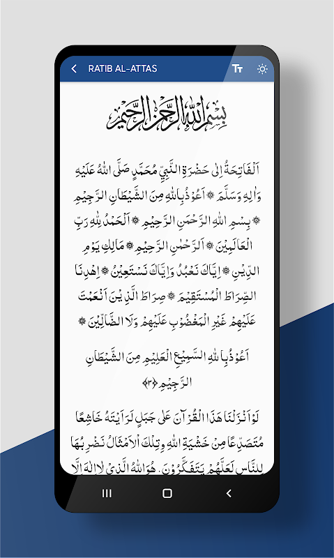 Ratib Al-Attasでは、ラティーブの文字サイズを自由に調整して、より読みやすくすることができます。ページ上部の3点アイコンをタップし、下部のスライダーをスライドしてください。