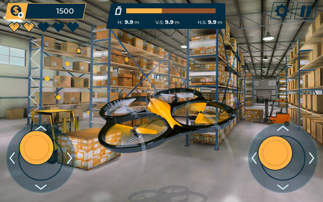 アカデミーに入り、無人機パイロットの免許を取得しましょう。このフライトシミュレータでは、あらゆる種類の無人機とさまざまなシナリオを飛ばなければなりません。都市を、湖を通って、学校の教室の中で、または商品の倉庫を通して飛ぶ。