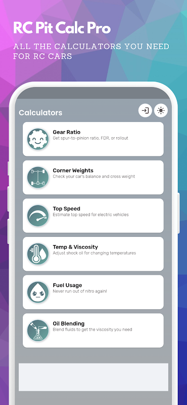 RC ギア計算機 Pro は、さらに多くの機能を備えています。RC カーのバッシングやレースに必要なすべての計算機が 1 つの無料アプリにまとめられています。