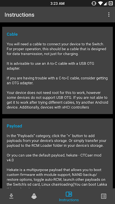 If you'd like, enable "Auto injector" in settings to automatically launch when an RCM mode Switch is connected. Check the option for always using this app when prompted. Now even when your Android device is locked, you can plug in a Switch that is in RCM mode and it will automatically load your chosen payload.