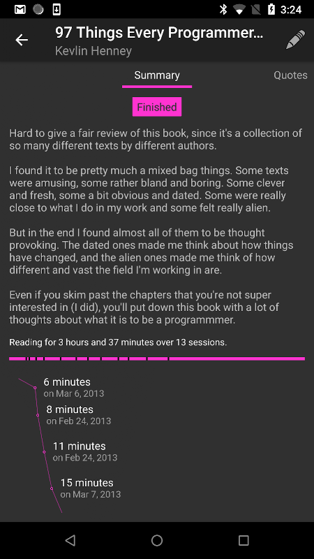 - 視覚化どのように遠くまでどのくらいの時間、あなたが本を拾ったたびに読み込ま
