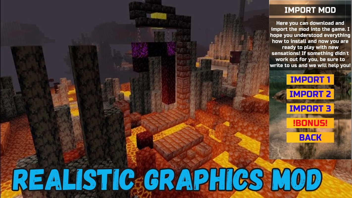 "This Realistic Graphics addon for MCPE app will help you install mods for Minecraft Poket Edition quickly and easily. It has a number of advantages: 💥