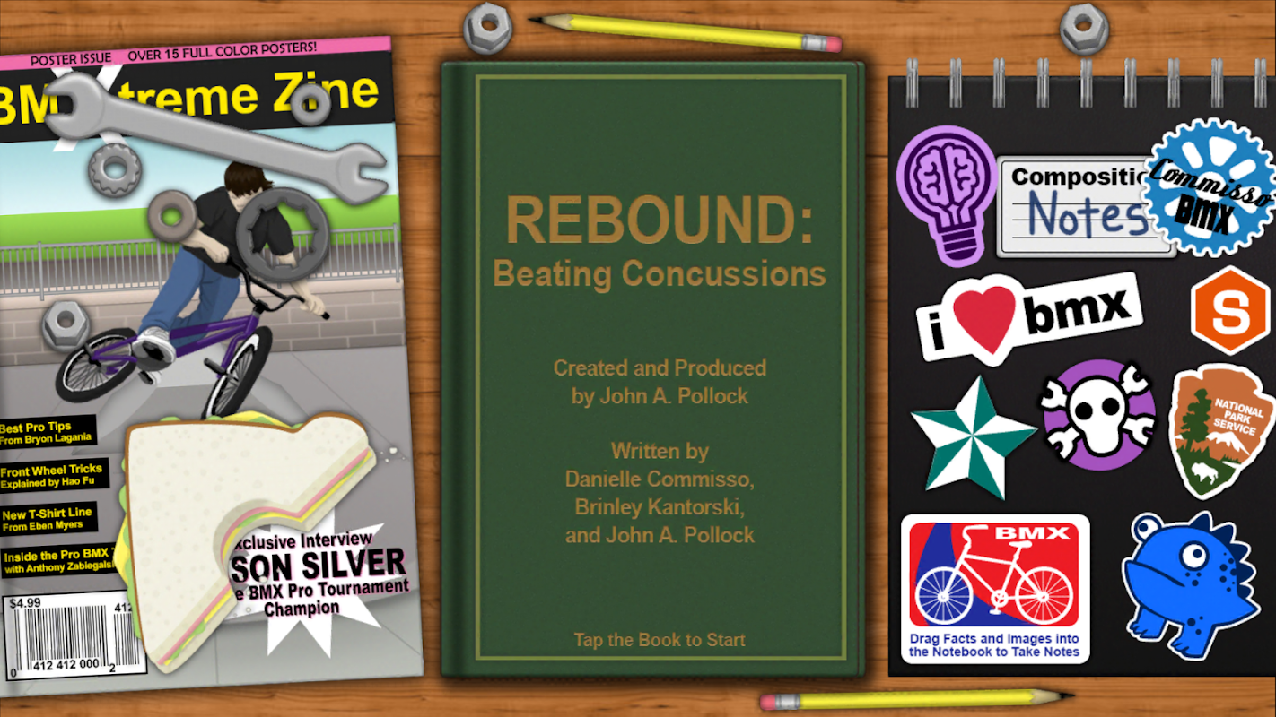 BiblioTech© is a platform for enjoying engaging learning experiences through reading and interactive materials. Learn important factual content, including the science behind brain health and the effects of concussions. And you get to do this while you build your own branching story. Each chapter features a decision point where the reader decides where to go next, which creates 100s of variations on the flow of the story.