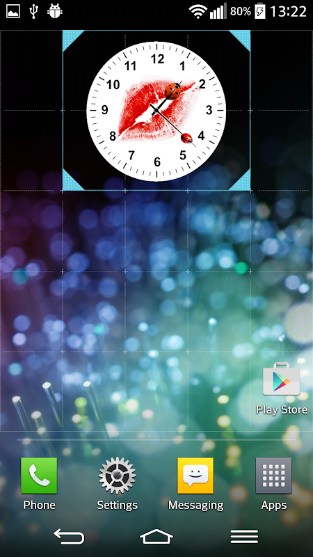 ❥ロングタップして、拡大縮小移動し、サイズを変更するために、時計ウィジェットを保持する。