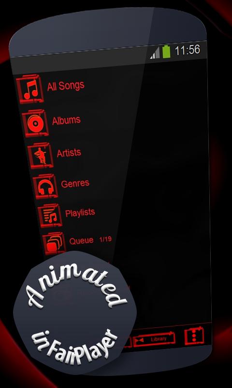 Get the "Red vortex" music skin straight away and you'll have a black-colored, fantastic, heavenly-looking device. Try it and enjoy it!