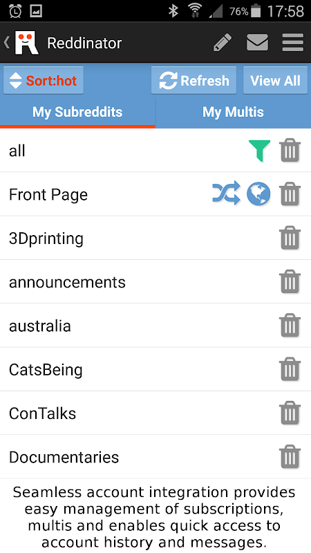 •シームレスなアカウント統合により、Subreddits&Multisをすぐに使用できます