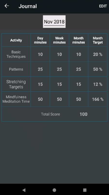-Journal where you can review your practice time against Daily, Weekly, and Monthly goals.