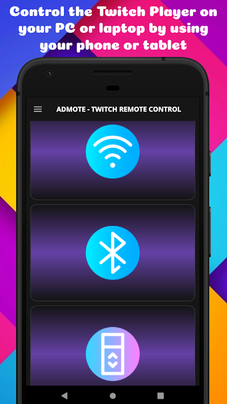 ADMote Control is an easy-to-use app that will turn your Android device into a Remote Control for your PC & laptop so you can control the Twitch Player.