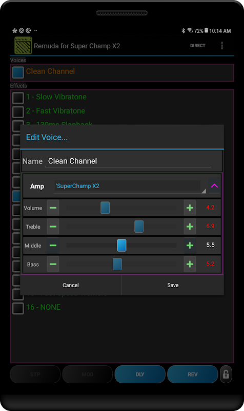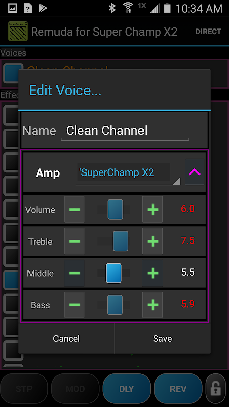 シングルタップでアンプボイスまたはF / Xを選択します。もう一度タップして編集します。変更を加え、変更に満足したら、[OK]をクリックしてアンプに保存し直します。