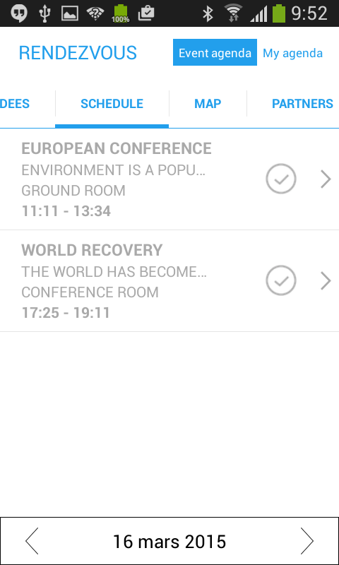 Designed exclusively for its beloved guests, RENDEZ VOUS is an intuitive application enabling all RENDEZ VOUS guests to follow up the event schedule, the one-to-one meetings agenda, the activities proposed and their required dress code but also to discover and connect with all participants and RENDEZ VOUS team.