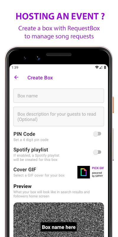 RequestBoxを使用して、ゲストが曲のリクエストをドロップするためのボックスを作成します。事前に曲のリクエストを取得するためのボックスを作成して、セットリストの準備に役立てることができます。または、パーティー中にボックスを作成して、ライブ要求を受け取ります。