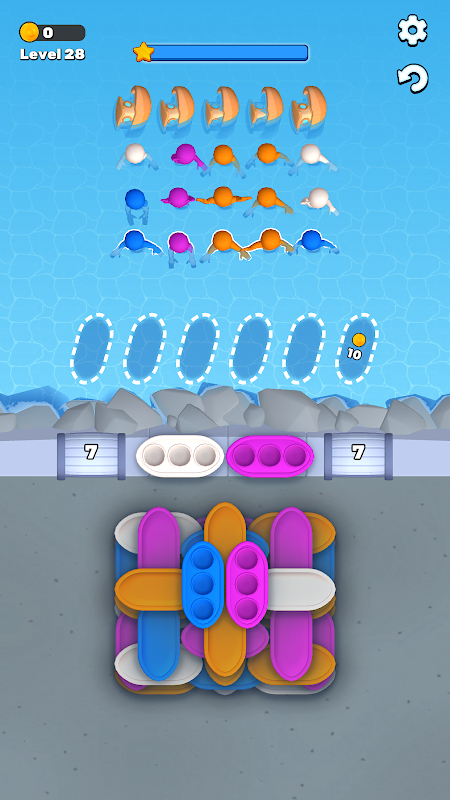 エキサイティングな救出ミッションの準備をしましょう!Rescue Jam では、カラフルなカヌーが積み重なり、一番上のカヌーだけが出航できます。あなたの使命は?上部のカヌーをタップして、海に取り残された人々を救いましょう。それぞれのカヌーを同じ色の 3 人でマッチングさせ、安全に連れて行きましょう!