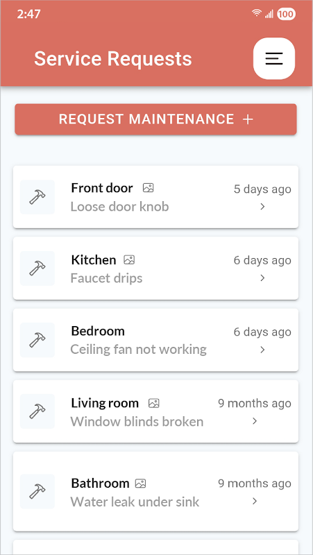 提出し、サービス要求を管理し、家賃を払う、との通知を受け取ります。