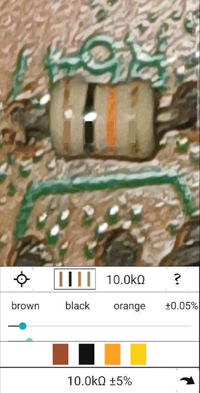 携帯電話のカメラを使用して、4 バンドの抵抗値をすばやく特定します。