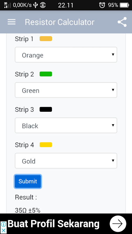 With this Resistor Color Code Calculator Apps, you can determine the value of resistor in easy way. Don't worry about this apps, its very simple and fast.