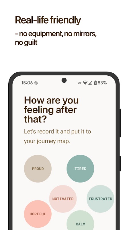 Just one tap starts your quick, daily workout. We've focused on consistency, not complexity, so you can build momentum with minimal effort. Track your progress with daily and weekly milestones and feel the satisfaction of a habit well-built.