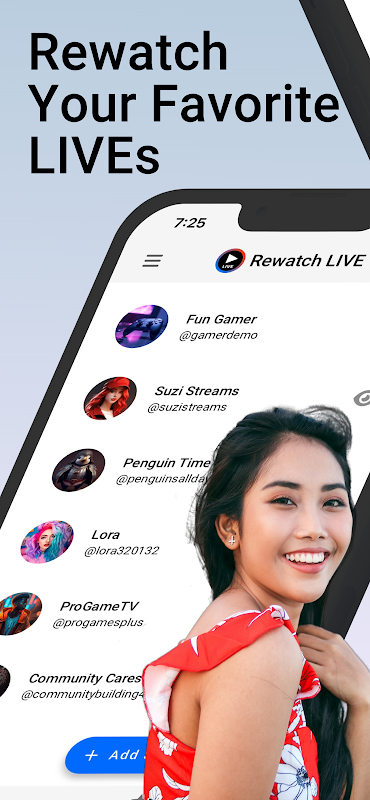 - お気に入りのソーシャル メディア クリエイターやライブ ストリーマーを簡単に複数追加でき、Rewatch LIVE は彼らのライブ ビデオ チャットを自動録画します。自分の TT ライブ ストリームも録画して保存し、後で再生することができます。それはあなた専用の TT ライブレコーダーです。