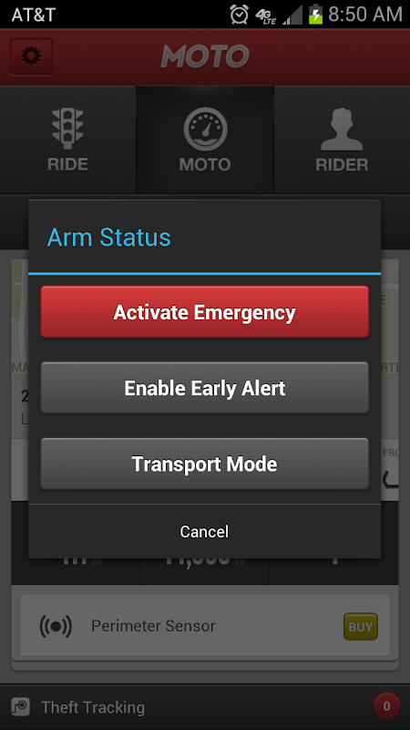 • Ride Secure upgrade module available for additional security (perimeter sensor, siren, and remote).