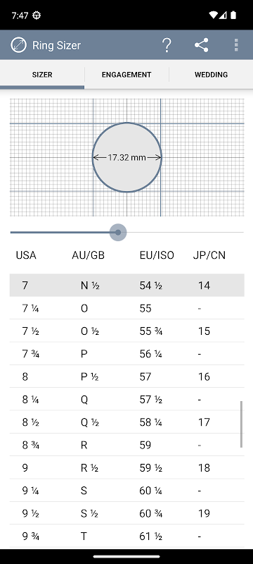 ジェイソン・ウィザースからの便利なユーティリティは、簡単に別の国でリングサイズを見つけるために作成しました。アプリでサポートされているいくつかのユニークな特徴があります。