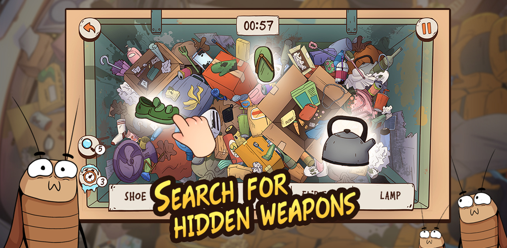 隠されたオブジェクトを見つけ、武器を選択し、ゴキブリを粉砕してください! 🪳?