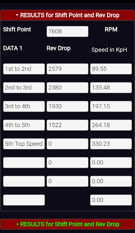 道路速度、シフトポイント、回転数ドロップ計算機用の計算機