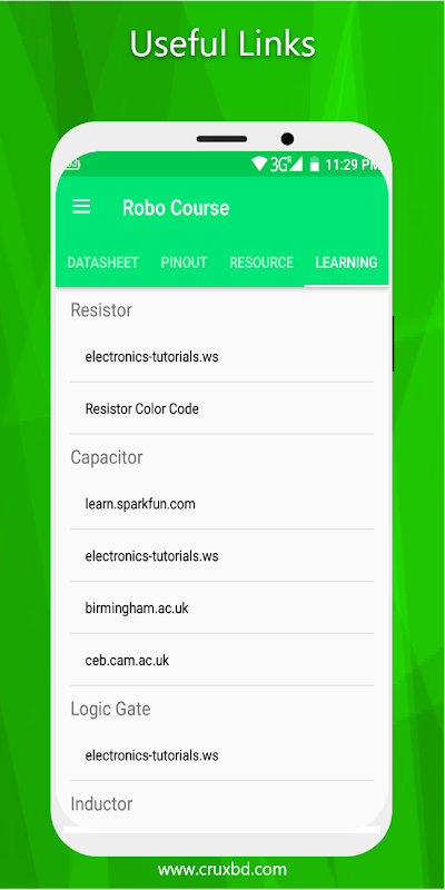 このアプリは、ロボット工学、電子工学、IoT、ドローン作成、プログラミングなどのための絶対的なオールインワン学習アプリです。あなたはTECH NEWSセクションの最新の技術ニュースについて通知されます。これ以外にも、たくさんの電子計算機、何千もの電子部品データシートのコレクション、たくさんのピン配置、電子機器のためのリソースなどがあります。