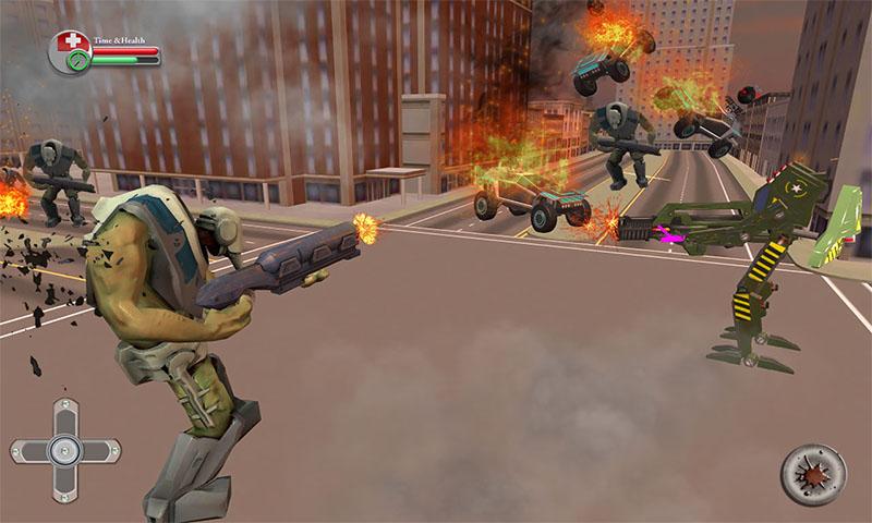Robots war is going to start; Enemy robots had set the base near the city and moving forward to attack. Control your robot and your duty is to save your city and destroy them fast as you can.