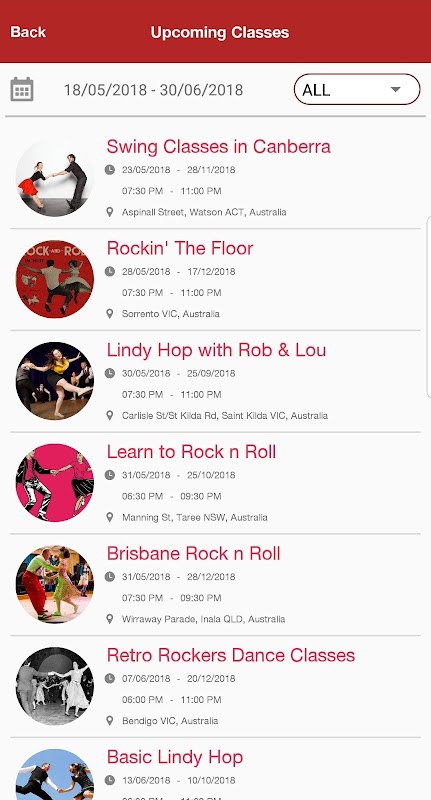 「ロケットのApp」を使用すると、レトロなインスピレーションを得たダンスクラスを探すことができます