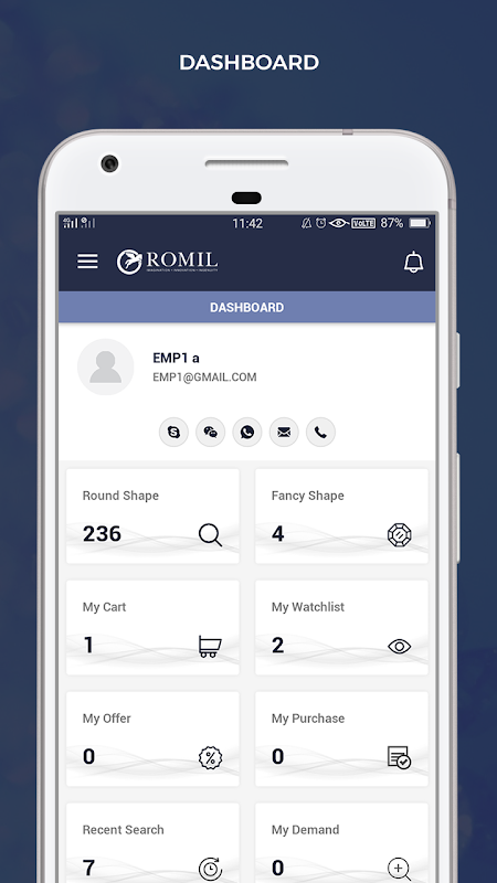 Romil Impexを使用すると、ダイヤモンドをオンラインで購入できるようになりました。アプリケーションは、オンラインダイヤモンド購入プロセスをまったく新しいレベルに引き上げる機能を強化しています。 Romil Impex Mobile Appを使用して、すべてのお客様にとってダイヤモンド購入プロセスをより高度で使いやすいものにすることを目指しています。