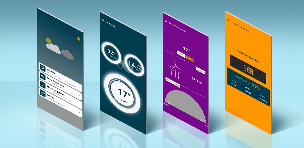 デジタル温度計、湿度計、気圧計の3つの機能を、1つのシンプルなアプリで実現します。