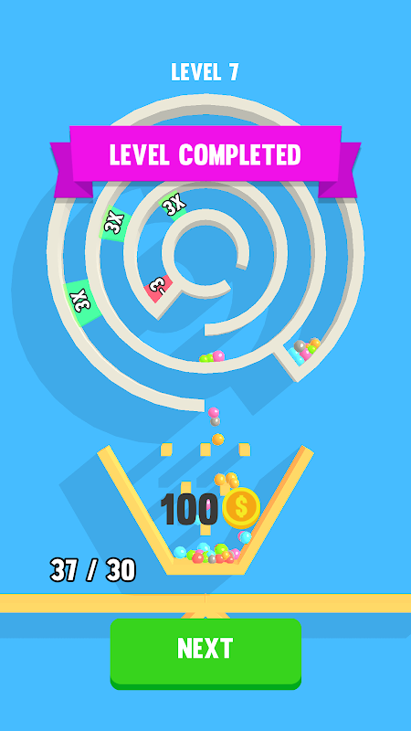 Rotate platforms and multiply colorful balls to collect the maximum amount of balls.